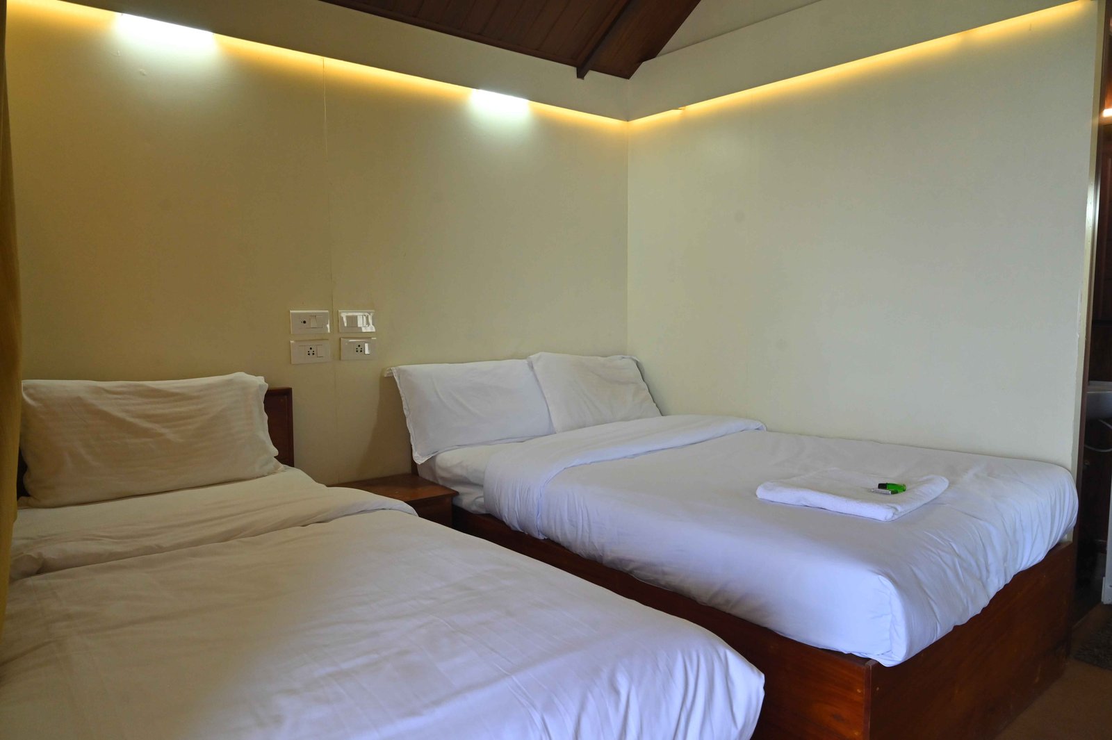 The tranquil and opulent double-family cottage in Kanthalloor, which is surrounded by wide greenery and offers stunning views of the Western Ghats, has a king-size bed above and a double-size bed downstairs. A quiet haven, the resort offers beautifully designed wooden cottages and elegant rooms that blend in perfectly with the surroundings. A restful and revitalizing stay is guaranteed by the accommodations' hillside location, which provides expansive views of hills and mist-covered valleys. The Perfect Blend of Coziness and Nature at Cheeni Hills Resort.
